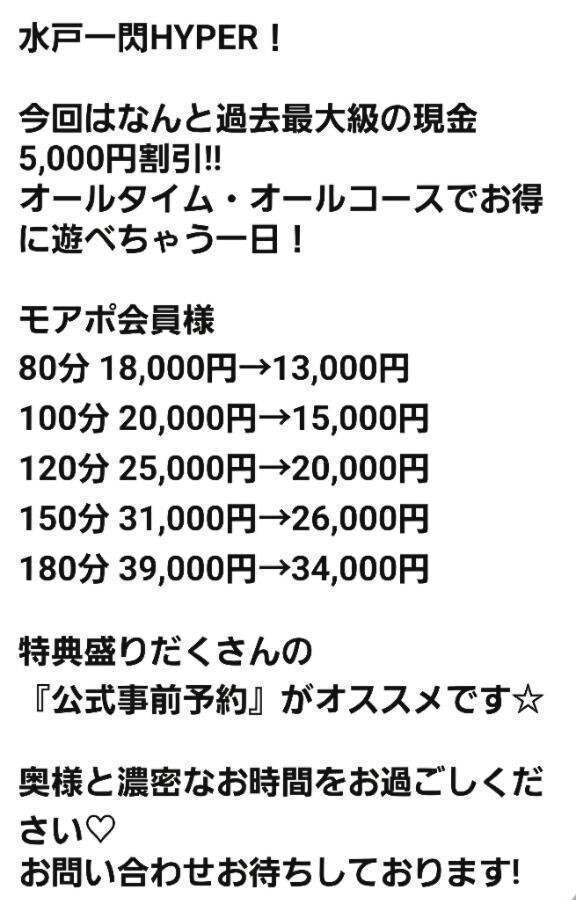 昨日の月に1度のイベントに引き続きなんと、明日もイベントします明日のイベントがめっちゃ凄いのよ何と何と円の割り引きよよっ、水戸花壇の太っ腹やるな水戸花壇、恐るべし太っ腹女の子もスタッフも一同にエロお兄様をお待ちしています