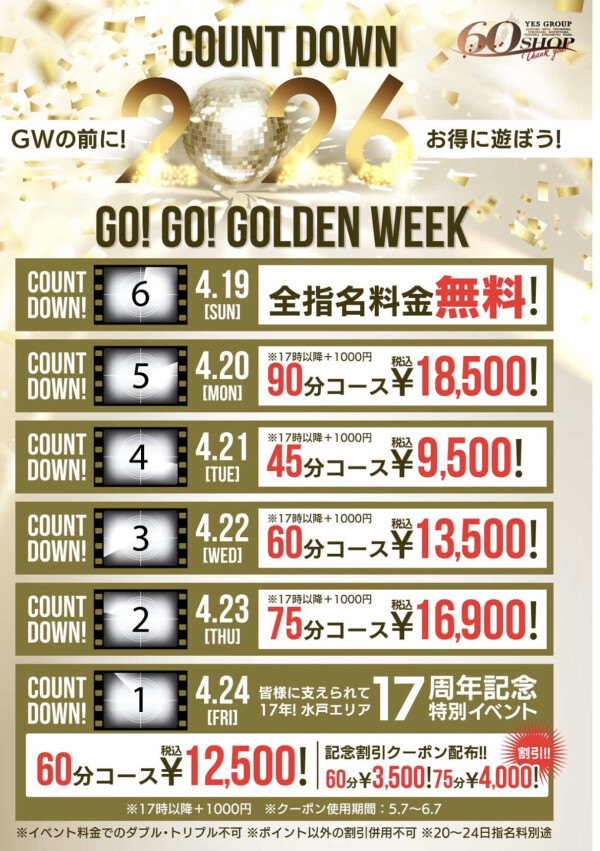 最終日は60分12,500円など、