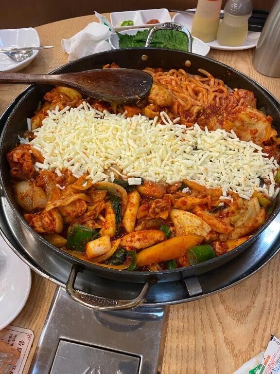 前に韓国に行った時にチーズタッカルビ見たいな料理+ホックンパを食べてきたんだ😋💕