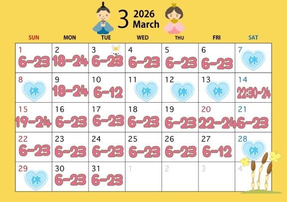 本日出勤 06:00〜23:00