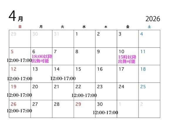 本日出勤 12:00から遊べます!