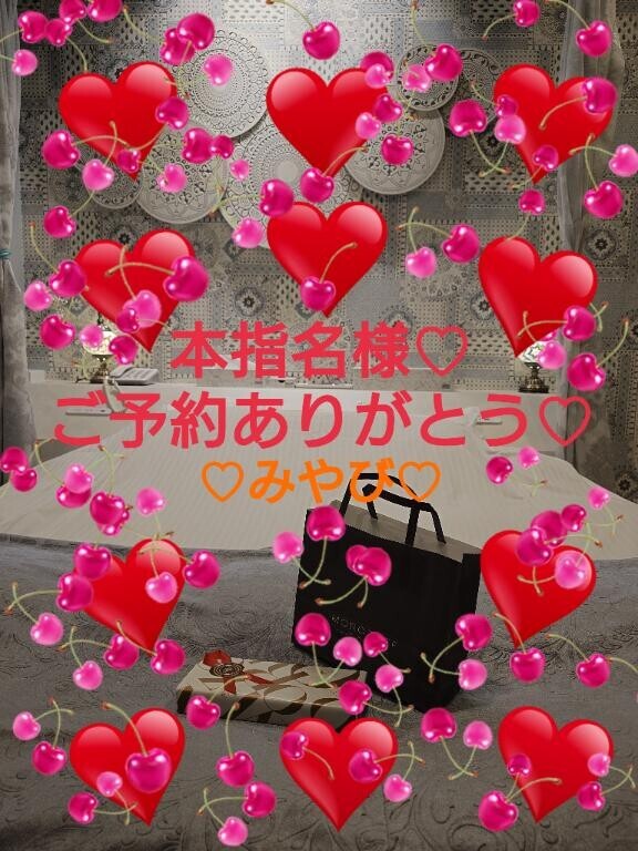 こんばんは♪?みやびです♪?この度もみやびにサプライズの150分再会ご予約ありがとうございました?お仕事がご多忙の中本当のサプライズをありがとう?お気遣いのお食事とチョコレートのプレゼントもいつもごちそうさまです♪?体調とお仕事が落ち着きましたらまたみやびとお愛してくださいね?サプライズに再会できます日をみやびも楽しみにしておりますね?みやび