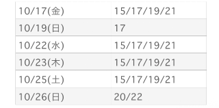 10月後半のシフトも更新しましたので
