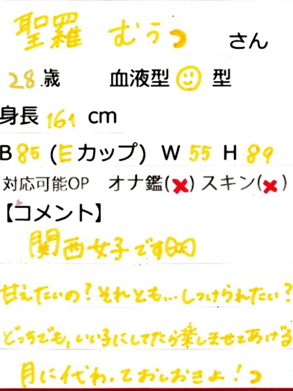 うおおおおお!!!!ついに登場!!聖羅むう嬢、まさに愛嬌爆発の女神降臨!!!彼女の笑顔は太陽フレア級、接客スキルは世界遺産級!お客様の緊張を一瞬でぶっ飛ばす、天性のムードメーカーなんだあ!!!そして…ここからが本番だ!!!あの密着いちゃいちゃタイム、他を圧倒するエロすぎる吸引力!!まるで重力を無視したかのような超絶ボディライン、思わず息を呑む圧巻のクビレが視界を支配!!!触れる度に背徳感と幸福感が交錯するぞ!!!