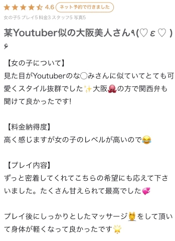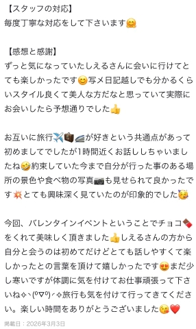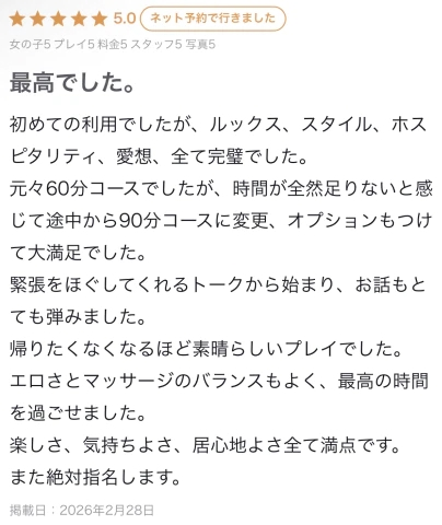 ルックスやスタイルだけでなく、接客や雰囲気まで褒めてもらえて少し照れてしまいました😌