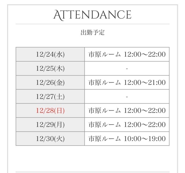 本日出勤 12:00〜21:00
