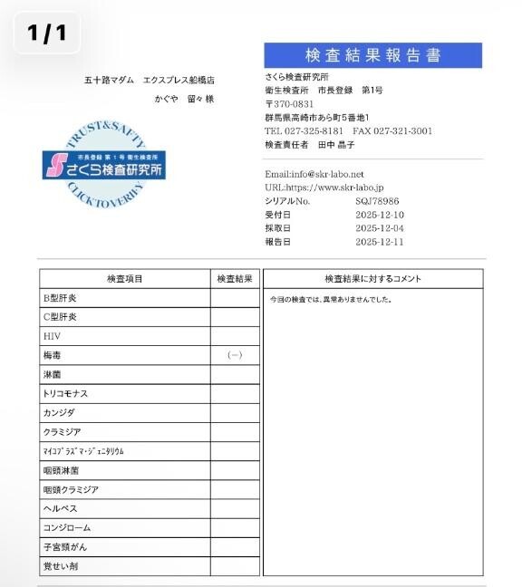 性病結果が全て無事クリアしました