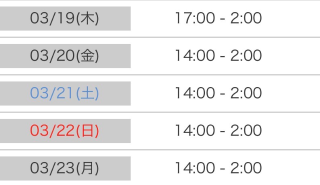 本日出勤 14:00〜翌02:00