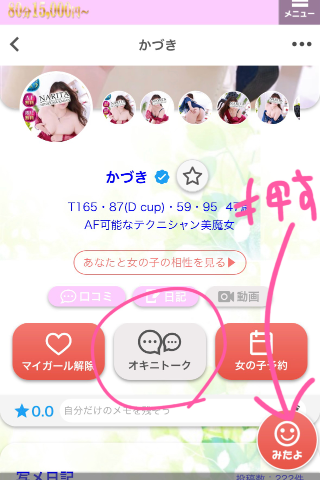 こちらにてオキニトークボタンにて