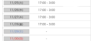 9:00~翌5:00