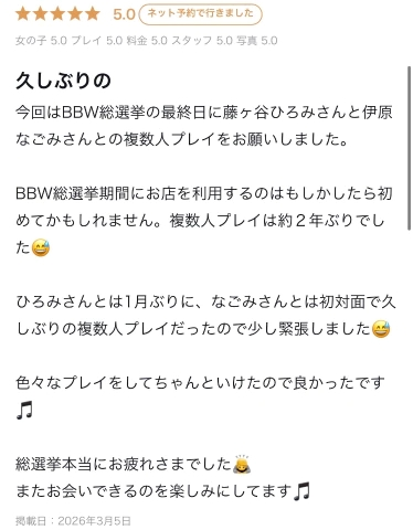 ラス枠、お泊まりなら一緒にお酒飲めるから