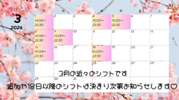 近々のシフトになります🌹