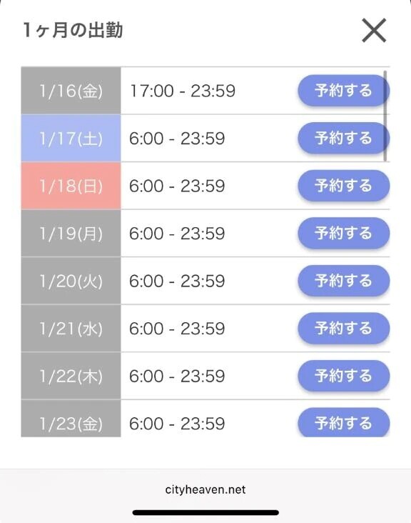 本日出勤 17:00〜翌00:00