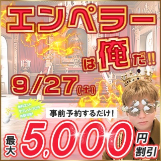9/27(土)は 100分以上のコースで2,000円引き+西船・船橋ホテル先入室で1,000pt付与