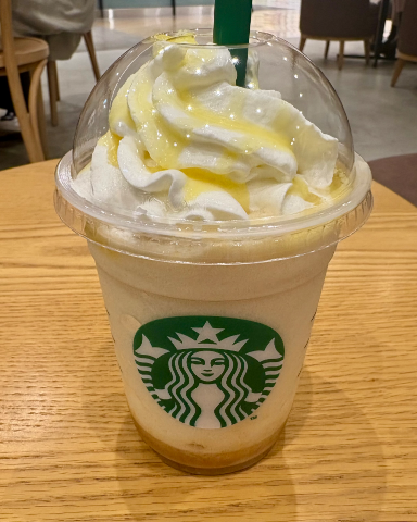 今日はね、昼間にちょっと贅沢気分でスタバで期間限定の【洋なし生キャラメルフラペチーノ】を飲んできたよ