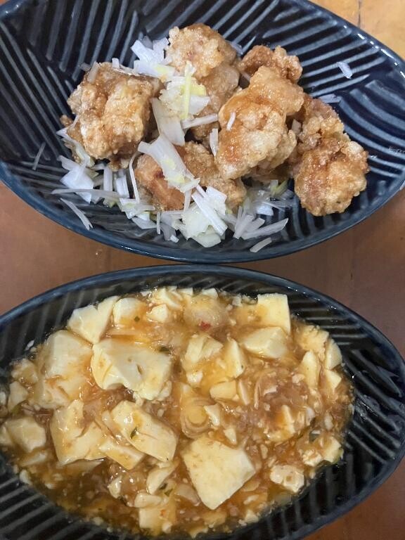 簡単中華にしました油淋鶏風と麻婆豆腐豚汁ご馳走様