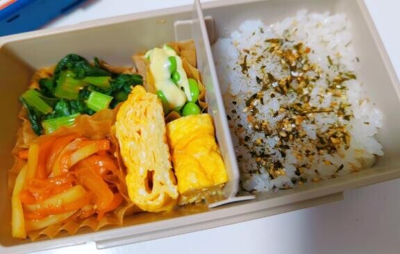 ちかです野菜しか入ってないのはちかがヴィーガンだからではなくて、冷蔵庫に肉類が一切なかったからですお肉全部食べちゃった思いつきでお弁当作ってみたけどすき間がすかすかすぎるので枝豆をつめてみたりして…いきあたりばったりなお弁当になっちゃったけど…