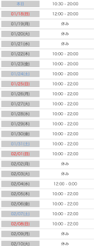 本日出勤 10:00〜19:00