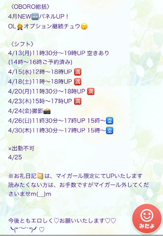 本日出勤 11:30〜17:30