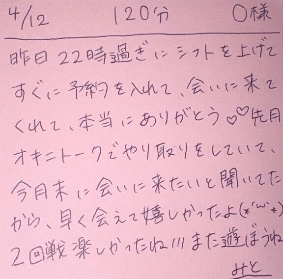 ずっと気になってくれていて、先月からオキニトークでやり取りしていたから、今日タイミングが合って月末になる前に、O様にお会い出来て嬉しかったよ
