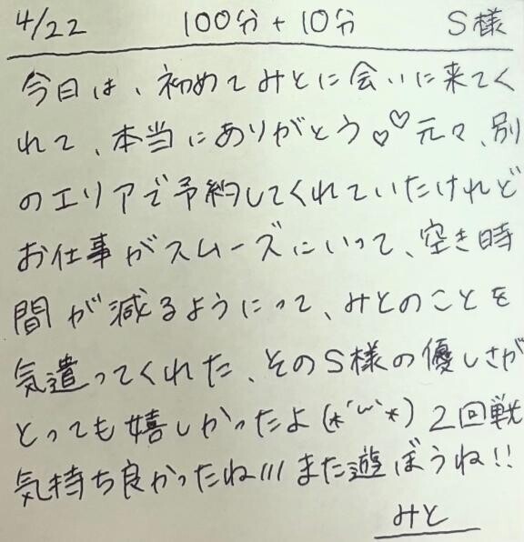 今回は『事前予約』をして、初めて会いに来てくれて本当にありがとう初めての西船人妻花壇の利用に、沢山の女の子の中から『みと』の事を選んでくれてすっごく嬉しかったよ