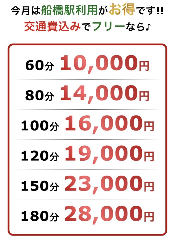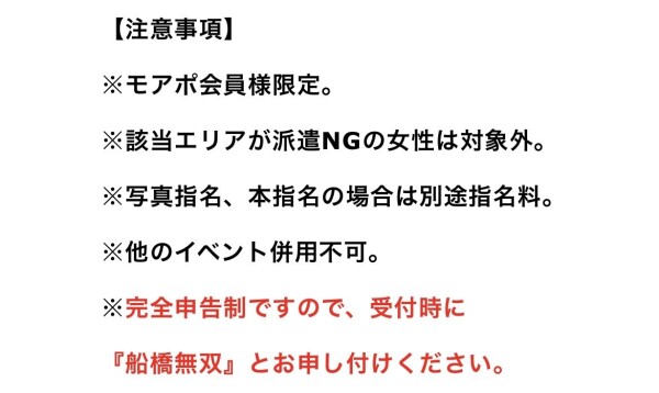 イベント日じゃないなら〜交通費1000円が無料になる船橋無双がお得でーす合言葉は「船橋無双」お安くお得にエロく楽しんでね