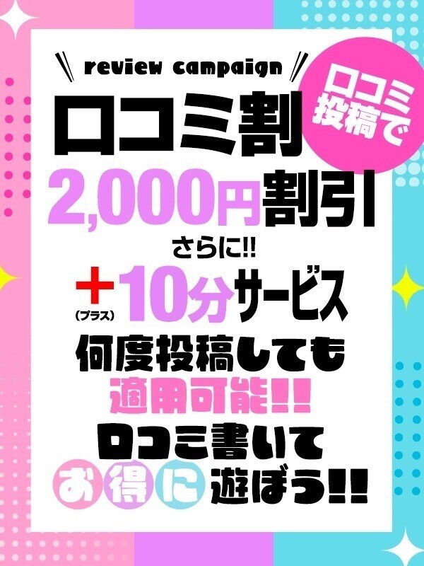 **口コミ投稿で《最大2,000円割引+10分サービス》**のイベントをやってます✨