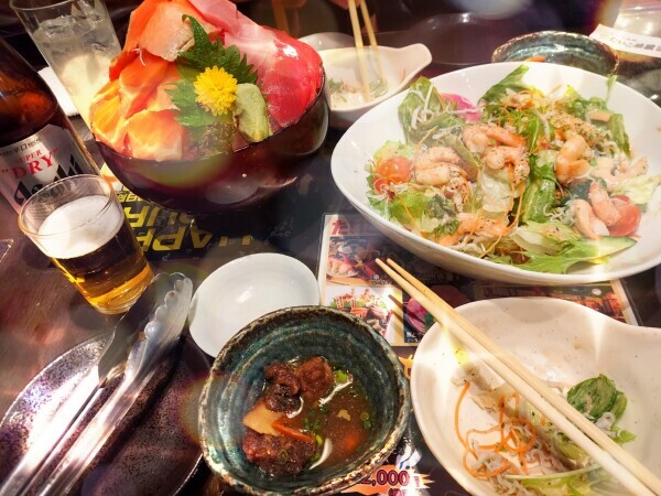 1/12(月・祝)、近所の有名な居酒屋さんへ。 ドラマや映画のロケや、ニュースのインタビューなど、テレビによく出てるこのお店。 マグロ解体ショーとか、じゃんけん大会とか、ランチは整理券を配ったりとか、わりとニギニギしているイメージでしたが、、、 この日19時、お客は私達だけ。さっき10人ぐらいの団体客が入れ違いで帰って行った。 静かで料理も早く出てくるからいいけど、なんせ居づらい(笑)。 年末年始、そして3連休と、みんなお金使っちゃってないのかなーー😅 給料日前だしね。 そんなわけで、今日も給料日前ということにはかわりない。 誰かお呼び出し来ないかなあ。