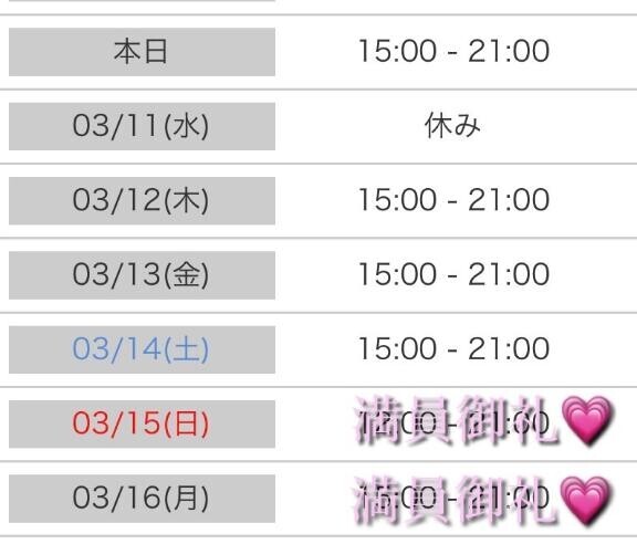 本日出勤 15:00〜21:00