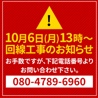 只今お店の電話回線が工事中らしいです![]()