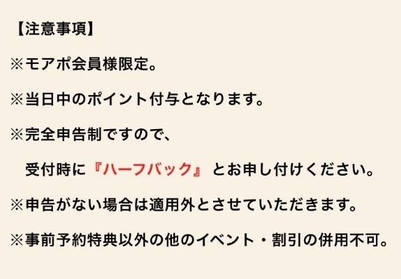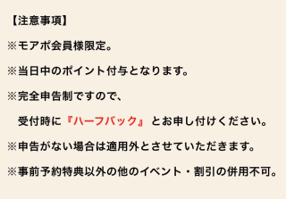 受付時に『ハーフバック』とお伝えください![]()