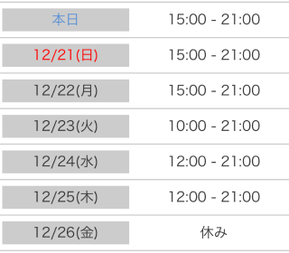 本日出勤 15:00〜21:00