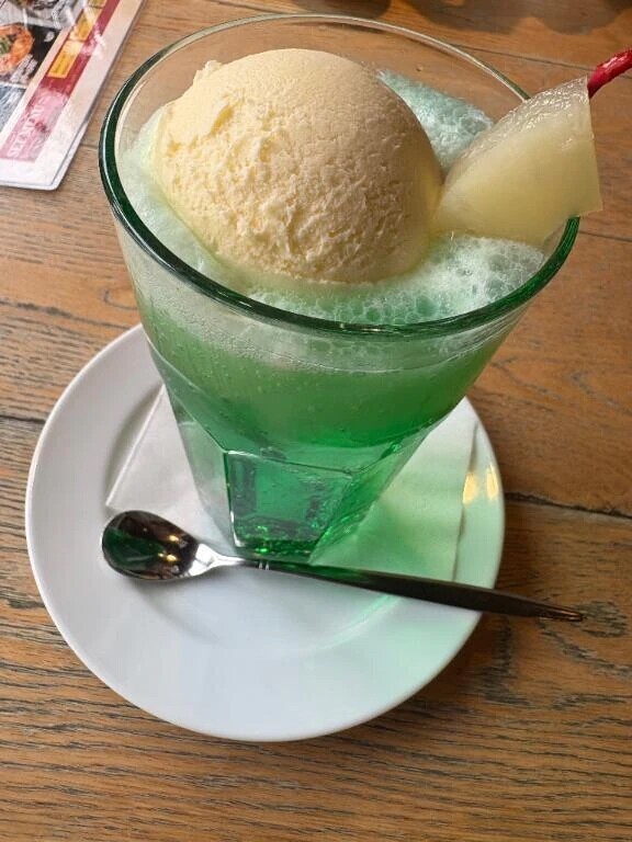 駅内にメロンソーダのお店があり、