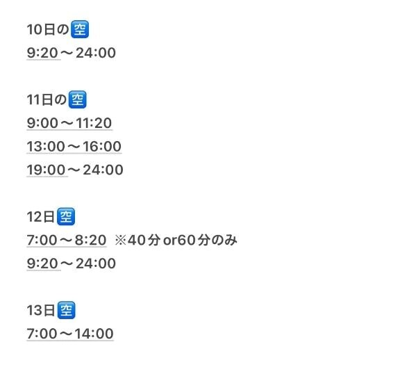 7:00〜8:20 ※40分or60分のみ