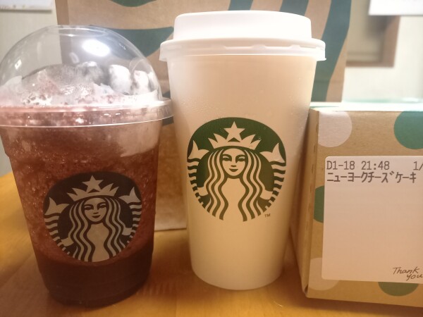 いつものスタバラテとアサイーフラペチーノにしてみた😃🎵投稿日時