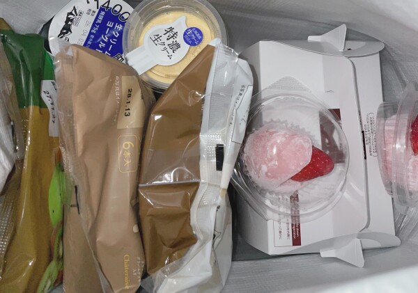 仕事終わりでアイスやケーキを買いました😆