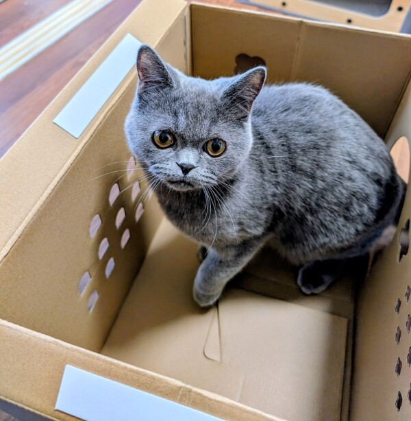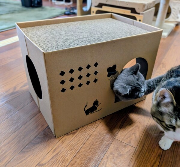 爪とぎ段ボールハウス作りました!今回のハウスは全部紙で出来ていて 両面テープでとめて 折り込むだけ!簡単!なのにちゃんとしてる!これなら捨てるのも楽ちん♪ちゃんとし過ぎてるのを買っちゃうと捨てる時 解体するのが大変だったりしますからね……本日もラストまでいます☆トップ