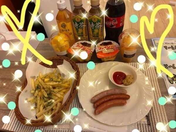 デザートとポテト食べながら