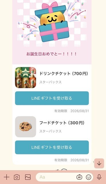 誕生日のLINEギフトでいただいた