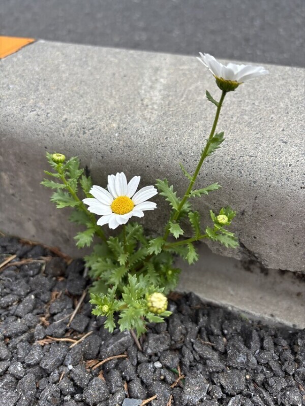 石の隙間からマーガレットが咲いていました。