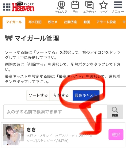 ③最高キャストから選択をする