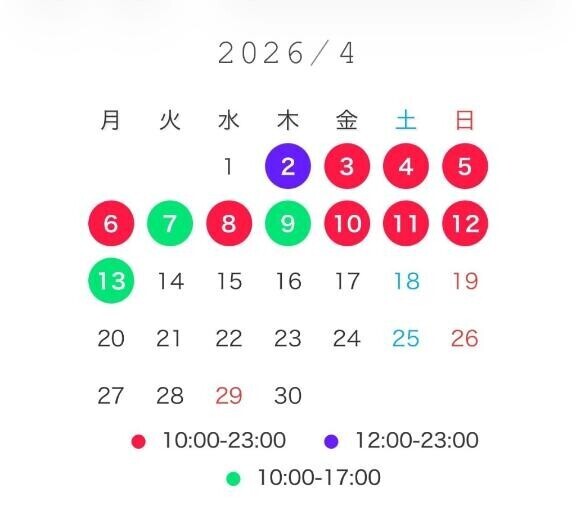 営業/10:00~23:59(受付開始9:00~)