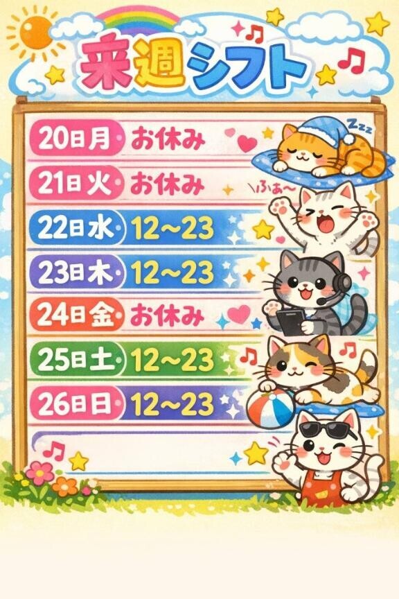 来週確定シフト?