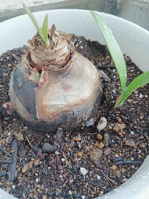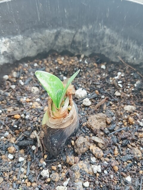 ベランダのアマリリスちゃんの赤ちゃんを別に植え替えしたんです💓