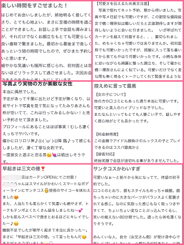 まだまだお兄さんからしたらなみちゃんってどんな子!?!???って感じだと思うので...前店の口コミちょっとだけ載せます?参考にしてね~
