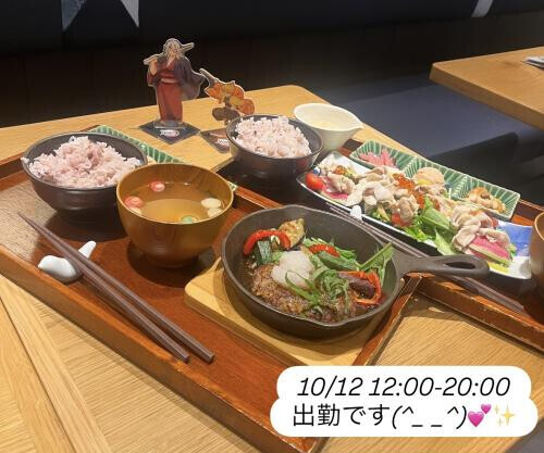 (あんまりお写真がないから結構前にお友達と鬼滅の映画見に行った時に撮ったご飯の写真載せますね