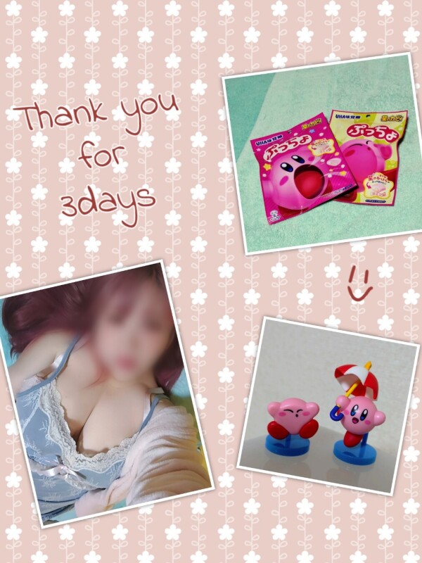 こんにちわっ(**) 遅くなっちゃいましたが 今週のブログです。。 ご査収ください。。(笑) 次回出勤は 2/21(土)15:00~24:00 2/22(日)9:00~24:00 2/23(月祝)9:00~21:00 全部休日だから 前日の金曜日or翌日の火曜日まで 1日延ばそうか悩み中です 昼職次第でまた決めますね(**) 前回の3連勤最終日 会いに来てくれたお兄さん方 お寒い中ありがとうございました(**) 最近毎回来てくれるのに その都度めっちゃ久しぶりにきたわぁ ってひと芝居打つ本指さんに爆笑 お背中の湿布をそっと剥がして お帰りの際に原状回復したり 泥酔のお兄さんが 廊下をまっぱでダッシュするのを 生暖かく見守ったり 笑いの絶えない1日を ありがとうございました!(*´`*) 差し入れはもったいなくて パッケージのまま飾りました(**) ここからレビューのお返事です 金曜日一番乗りの本指様 あの日寝てしまった映画は 昨日再度見直してきました(笑) パプリカ級!(*´0`*) だから夢に出てきたのかな? 年度末お忙しそうなので しばらくは夢の中にお邪魔しますね♪ 金曜日19時台?の本指様 お仕事終わりに来てくれてありがと! 年末からいっぱいかまえて嬉しいなっ 春になるまでトリミング(笑)はお休みして 身体冷やさないように過ごすんだよ? カービィは被ってしまった。。 チョコはホットミルクに入れてるよ(**) 金曜日最終枠の本指様 久々の再会でお互い照れちゃったねぇ 近況報告ありがとう! とにかく元気だったなら良かった まずは生活でそれから遊び♪ どれだけ空いても拗ねたりしないから 安心して遊びにきてね(**) それではまた来週 ブログで会おうね~! そろそろ花粉症のお薬もらいにいかなきゃ。。 全身むにむに やわらか女子好きさんの 性癖に刺さりますよーに! (*´・ω・)ノ :*: こなつ(*´v`*)vトップ
