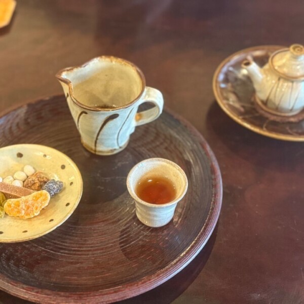 写真は中国茶と、空港で見つけた薬屋の広告😤