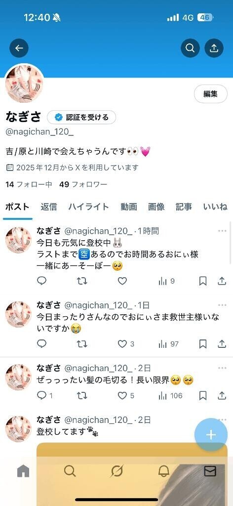 なぎささんの日常よかったらおにぃ様覗いてみませんか???実は流行りに乗って始めました?@nagichan_120気になることあったらDM待ってます?????