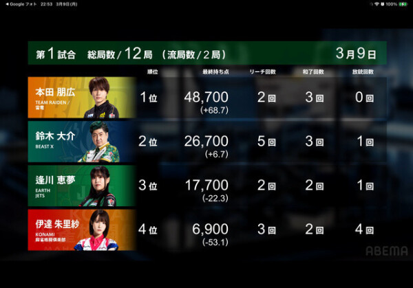 3/9のMリーグ